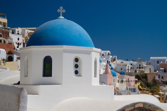 Home > Photos from late summer trip to Mykonos and Santorini > Classic Blue Church Dome, Oia, Santorini