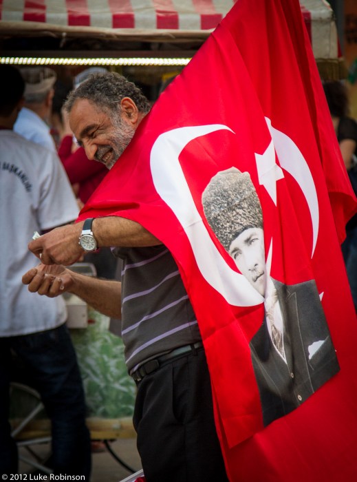 > A night and a day in Istanbul > Man selling Ataturk flags, Yeni Camii