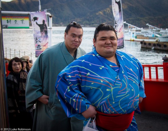 Sumo rikishi on the Miyajima Ferry