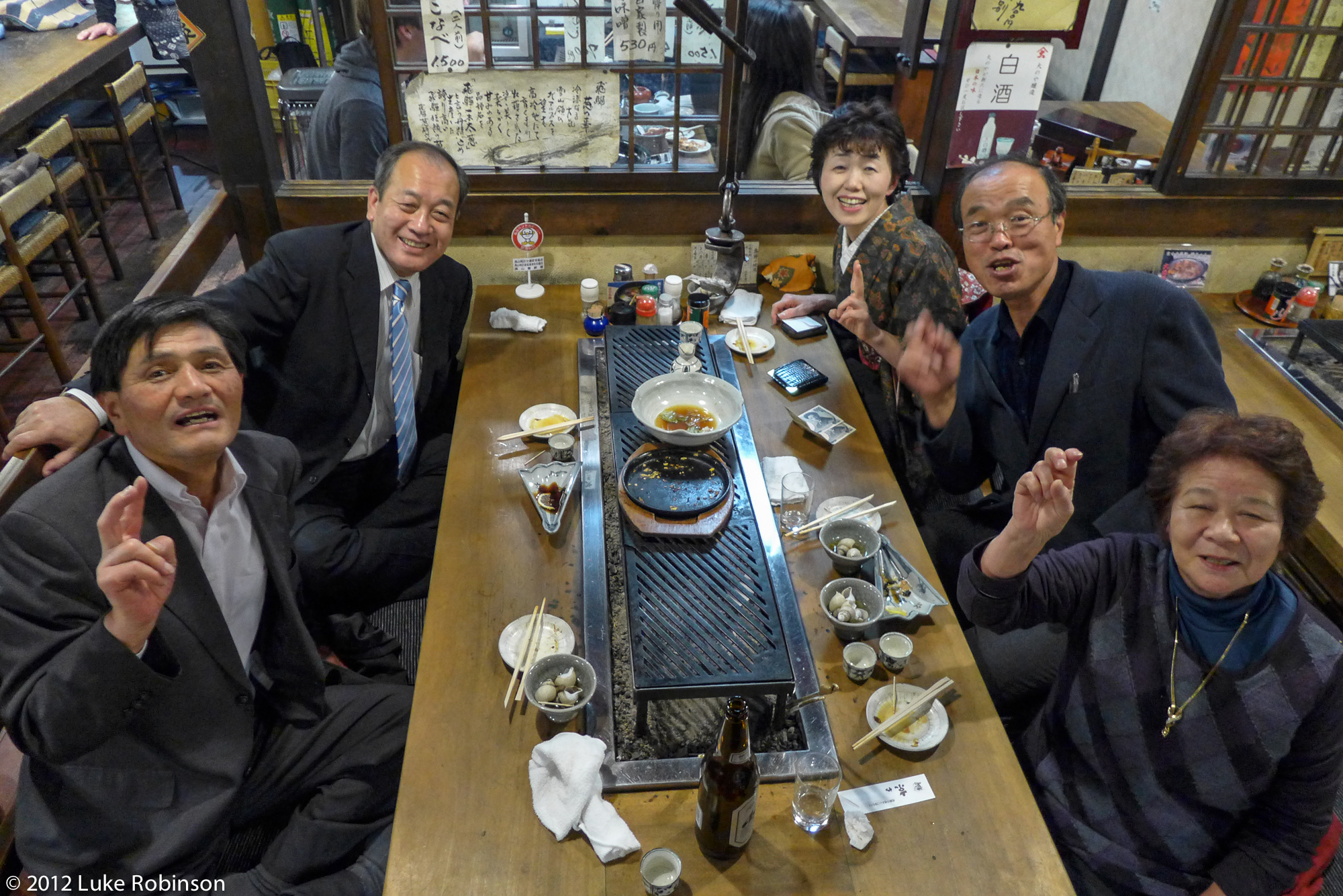 From Kyoto we made our way North up into the Japan Alps, to the sleepy mountain town of Takayama. Famous for its preserved old town with its wooden buildings, Takayama is altogether more accessible than Kyoto was, though as we got there in the late afternoon and didn’t clock onto the fact that all of the tourist-oriented shops and restaurants in the old town area shut down precisely at 5pm, we wandered about for a while in the twilight increasingly worried that we had made a mistake and that Takayama was in fact not open for business. Thankfully a bit of research prior to the trip meant we ended up in a friendly (and, more importantly, open) izakaya where we sat around low tables, grilled our own Hida beef over a charcoal brazier, and were regaled with local drinking songs by the increasingly-inebriated neighbouring table. In fact we found Takayama locals to be by far the most welcoming and gregarious the Japanese we encountered on our trip, and we ended up exchanging rounds of drinks and plates of food and getting riotously drunk. So drunk that, defying all reason, we walked into an otherwise anonymous-looking door because we heard karaoke coming out of it, and ended up spending the evening in the company of the elderly mama-san and a couple of other old coots who had nothing better to do on a Monday night….